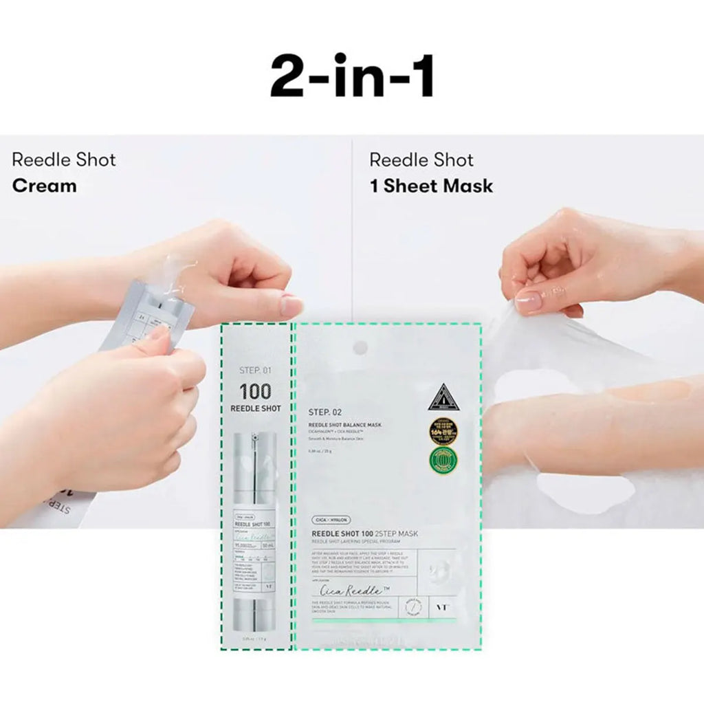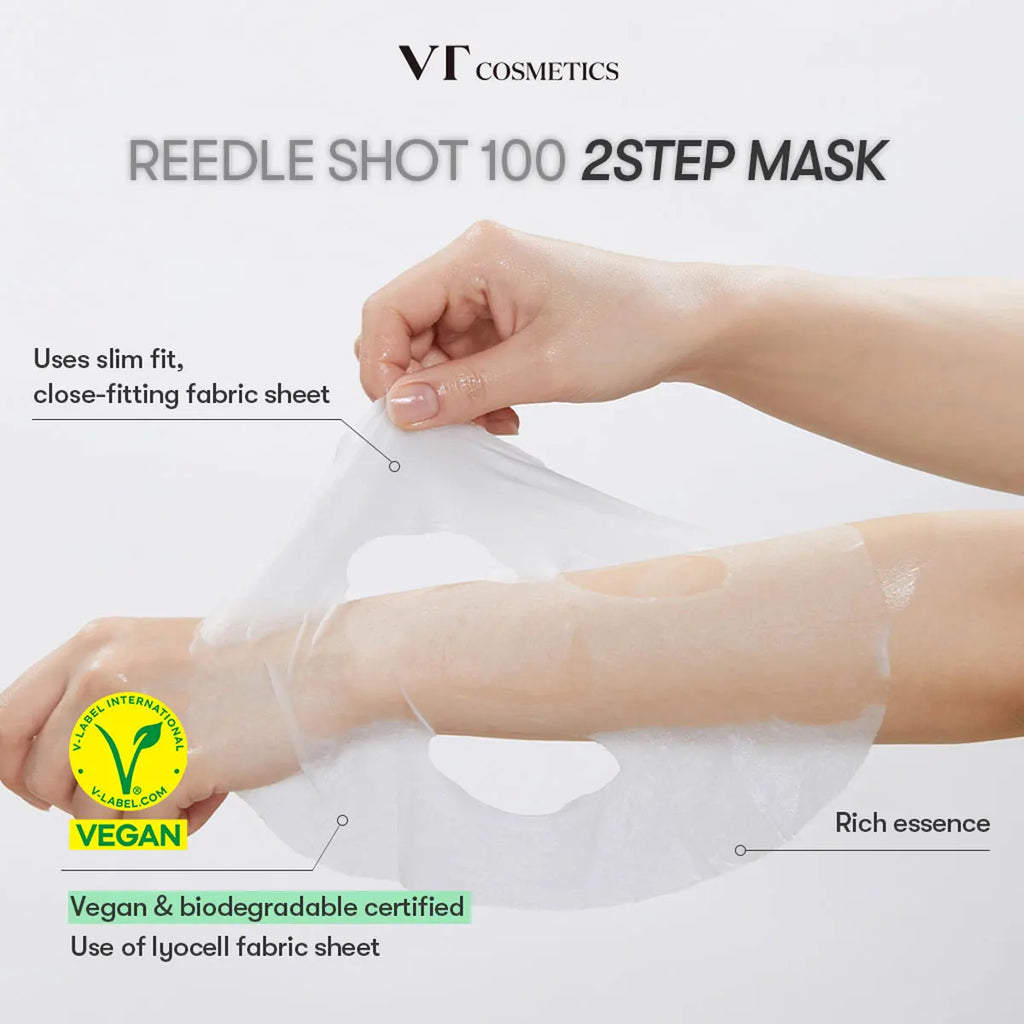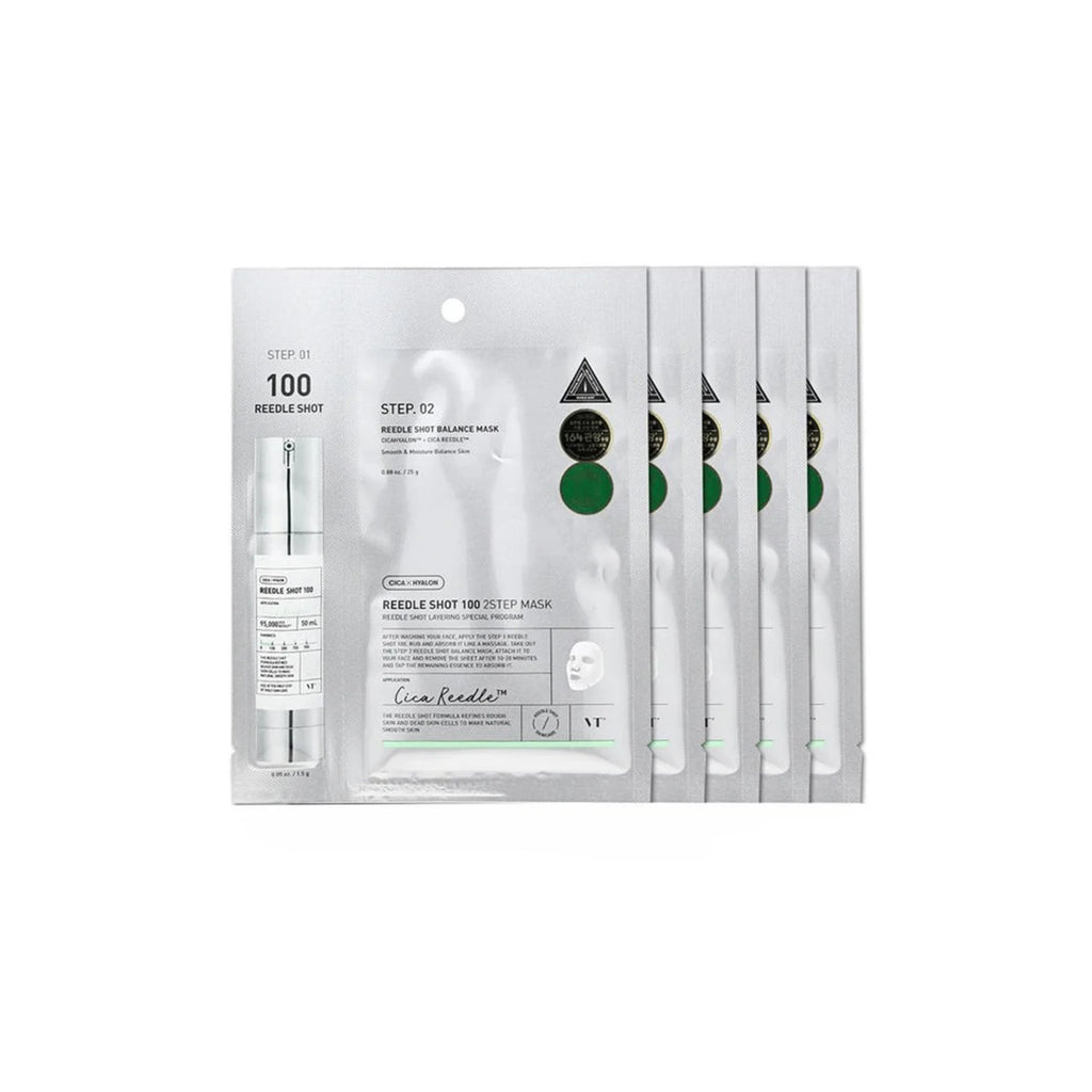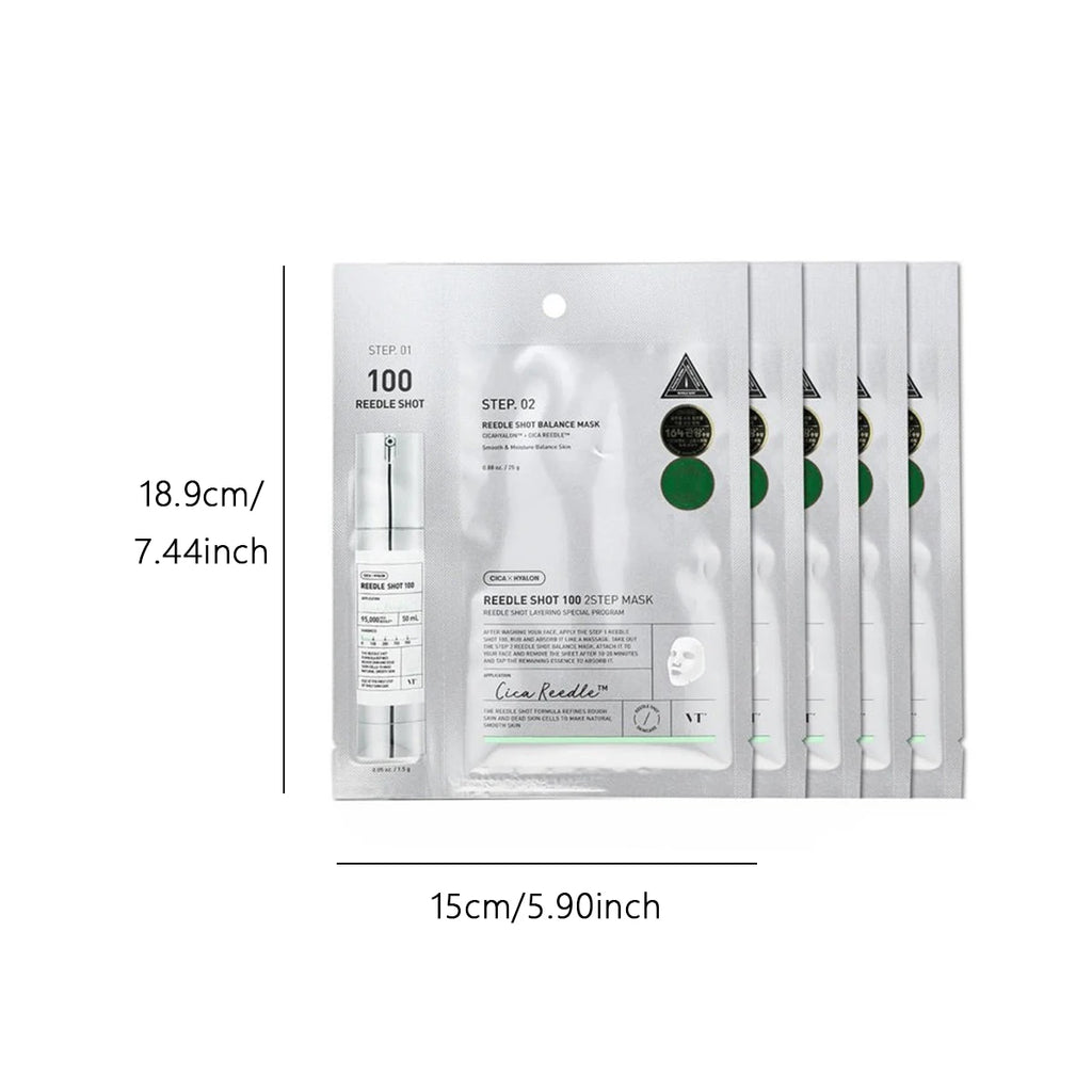 Unlock a new level of targeted skincare innovation with the VT Reedle Shot 100 2-Step Mask. This premium, two-phase treatment system is meticulously designed to deliver intensive repair and deep hydration directly to your skin's core. Step One features a specialized micro-crystal gel patch, formulated to gently adhere and create a micro-channel effect, prepping the skin for maximum absorption. Step Two follows with a highly concentrated essence-soaked mask sheet, infused with nourishing ingredients that flood the pre-treated area with moisture and active nutrients. Together, these steps work synergistically to provide powerful, focused care—addressing concerns like dryness, loss of elasticity, and uneven texture. Each 5-sheet box offers a spa-grade, at-home facial experience, leaving your complexion visibly plumped, radiant, and profoundly renewed. Ideal for a weekly reset or a pre-event skincare boost, this mask combines advanced Korean beauty technology with a simple, two-step ritual for transformative results.