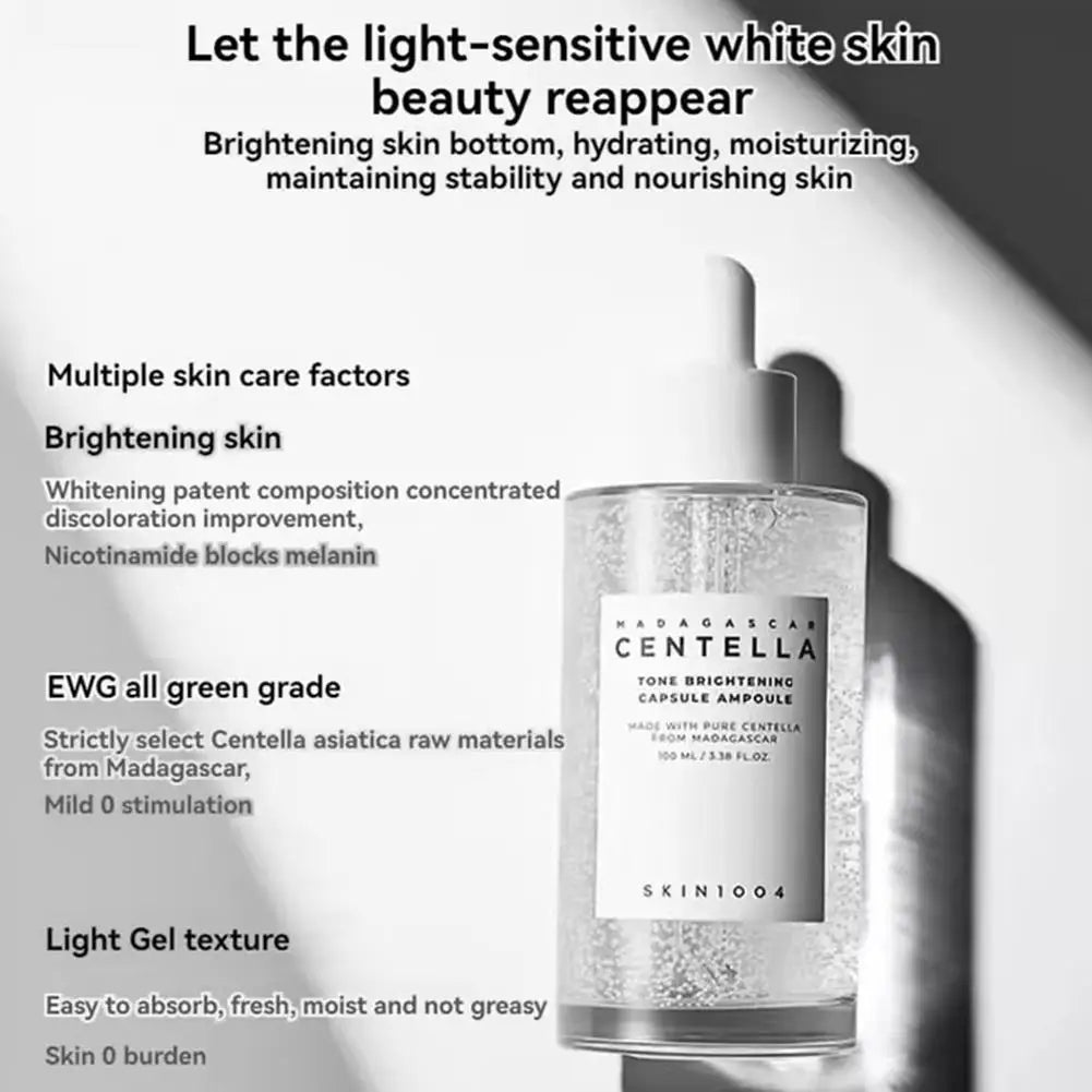 Efeito clareador: Contém ingredientes clareadores que podem inibir eficazmente a produção de pigmento escuro, atenuar a pigmentação existente e a opacidade, iluminar o tom da pele e deixá-la com uma aparência mais uniforme e radiante.